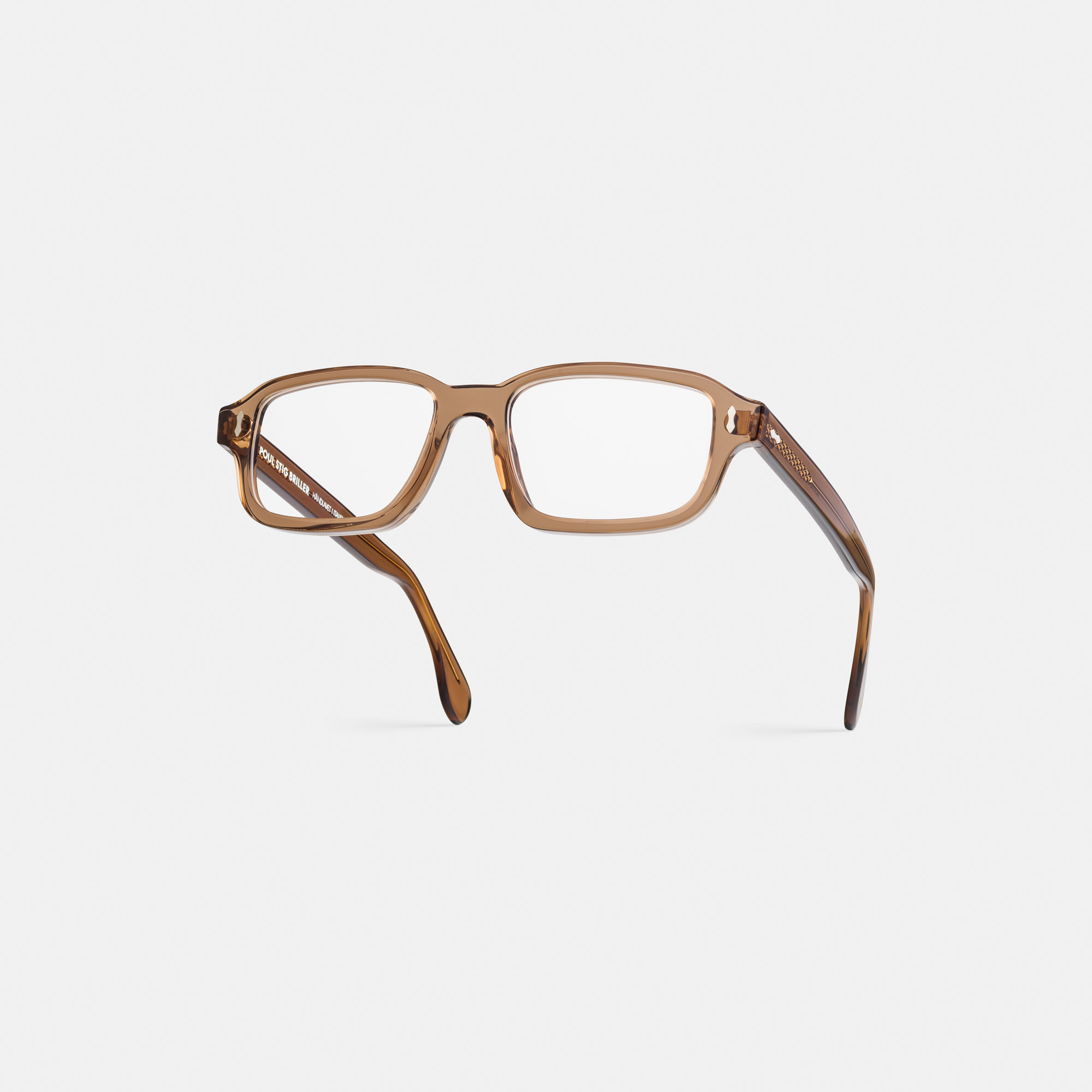 Et rektangulært brillestel med et roligt og afbalanceret udtryk. Stellet er udført i håndlavet acetat i farven jord, hvor de varme, transparente toner giver dybde og balance til formen. Bertram er en naturlig del af kollektionen – enkel, selvsikker og tidløs i sit udtryk. Et stel med karakter uden at være dominerende, og som klæder både kvinder og mænd.